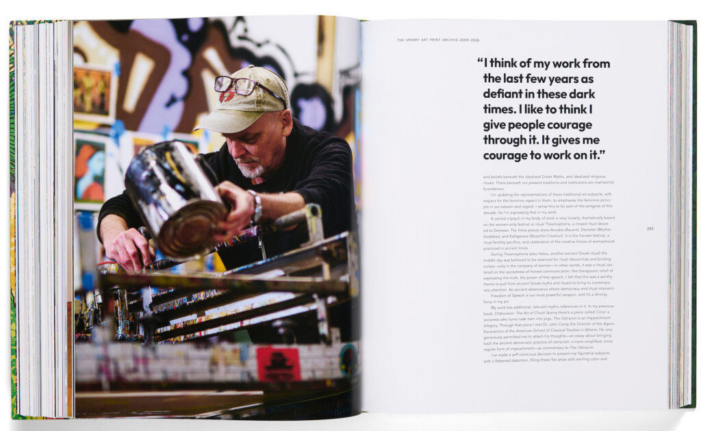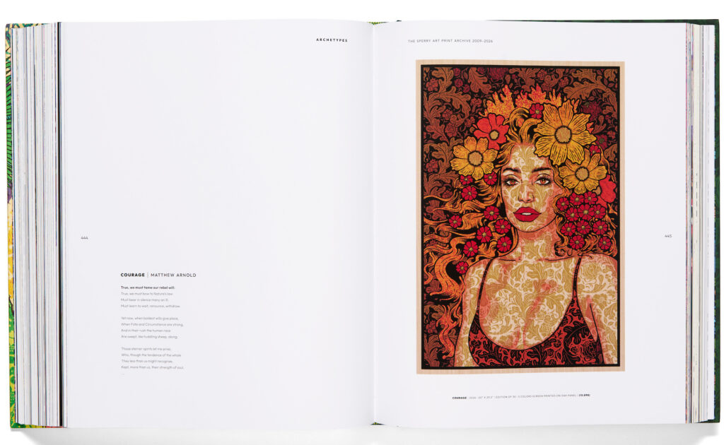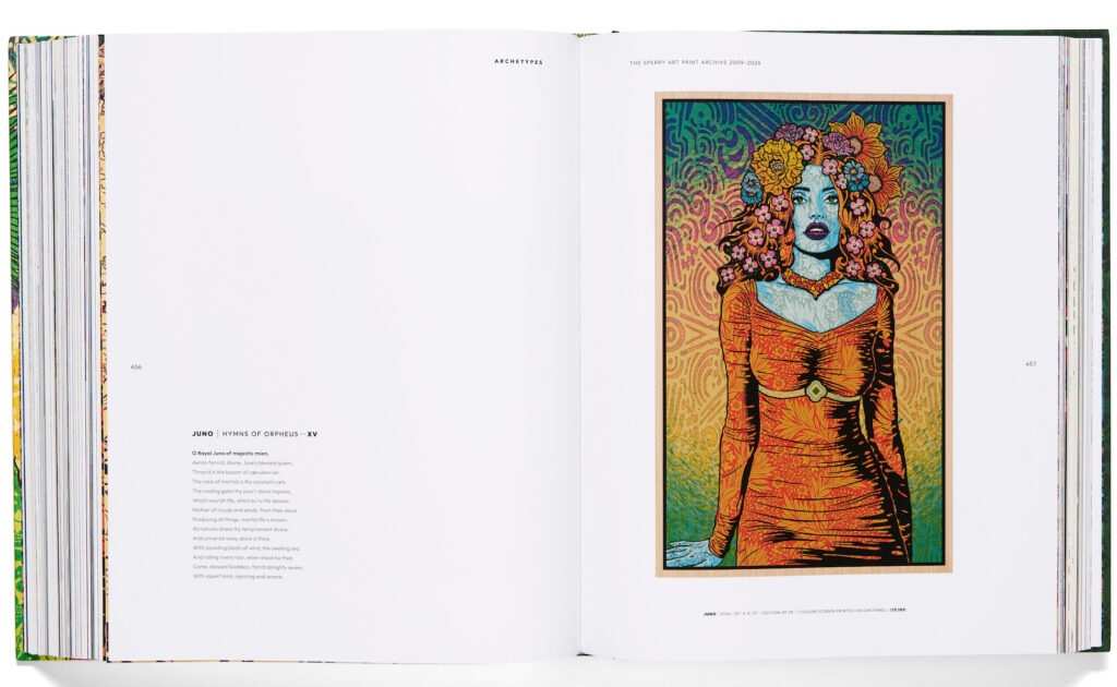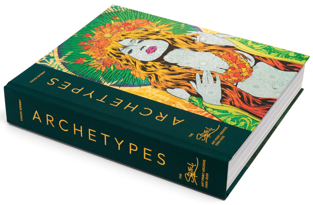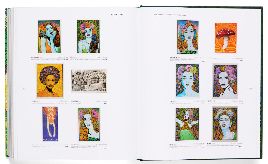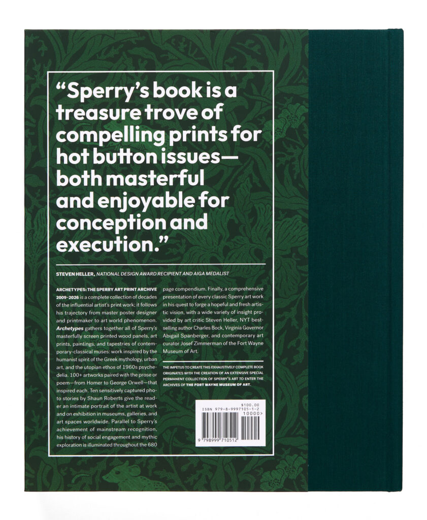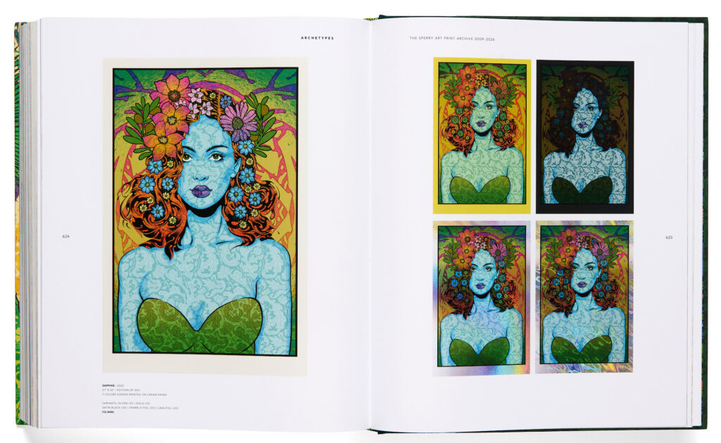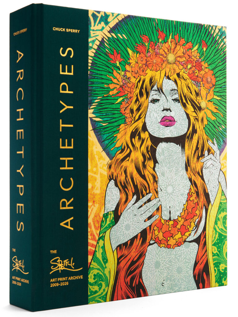 ARCHETYPES: THE SPERRY ART PRINT ARCHIVE 2009-2026 is a complete collection of decades of the influential artist’s print work; it follows his trajectory from master poster designer and printmaker to art world phenomenon.