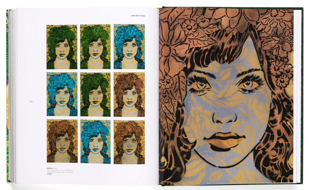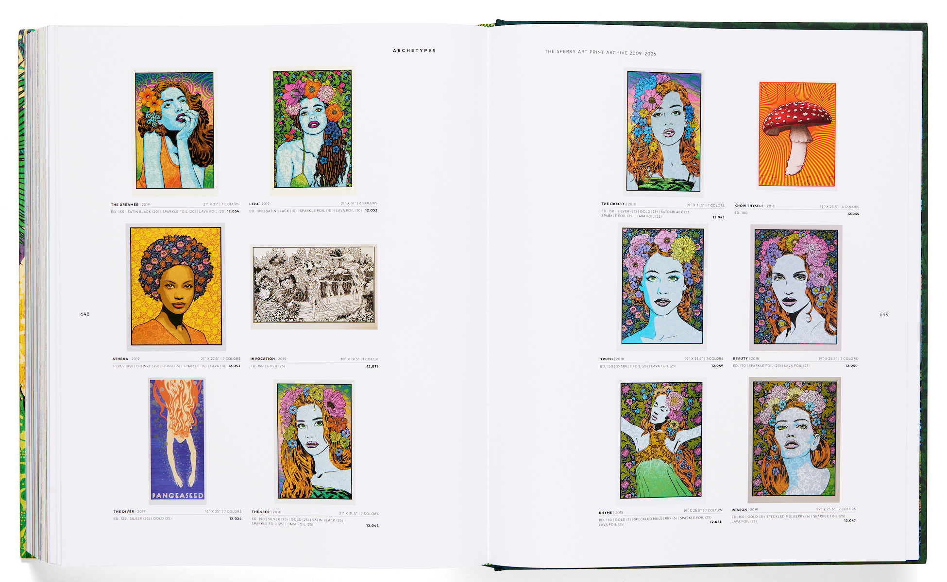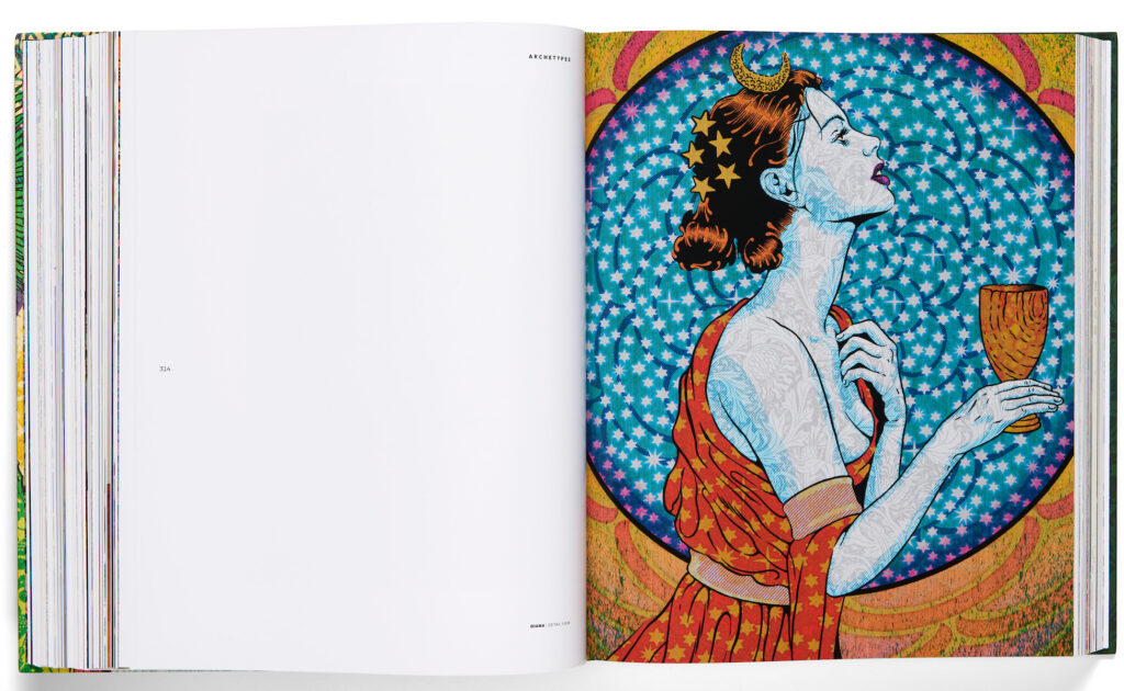 Archetypes gathers together all of Sperry’s masterfully screen printed wood panels, art prints, paintings, and tapestries of contemporary-classical muses: work inspired by the humanist spirit of the Greek mythology, urban art, and the utopian ethos of 1960s psychedelia. 100+ artworks paired with the prose or poem — from Homer to George Orwell — that inspired each. Ten sensitively captured photo stories by Shaun Roberts give the reader an intimate portrait of the artist at work and on exhibition in museums, galleries, and art spaces worldwide. Parallel to Sperry’s achievement of mainstream recognition, his history of social engagement and mythic exploration is illuminated throughout the 680 page compendium. Finally, a comprehensive presentation of every classic Sperry art work in his quest to forge a hopeful and fresh artistic vision, with a wide variety of insight provided by art critic Steven Heller, NYT bestselling author Charles Bock, Virginia Governor Abigail Spanberger, and contemporary art curator Josef Zimmerman of the Fort Wayne Museum of Art.